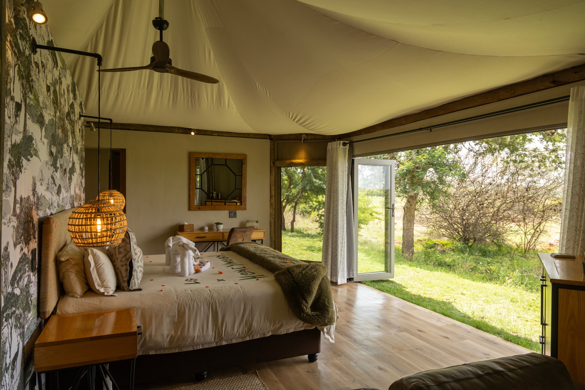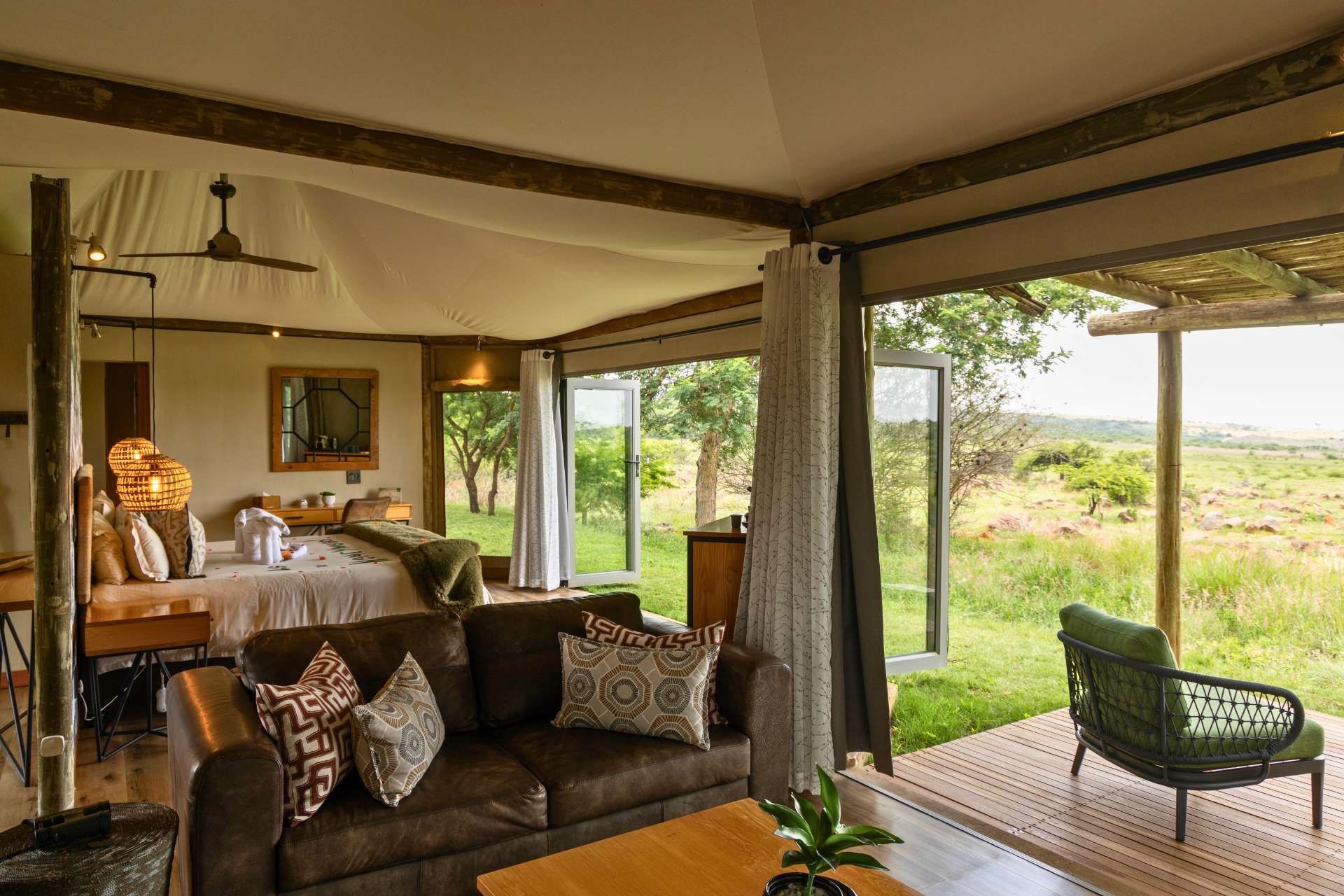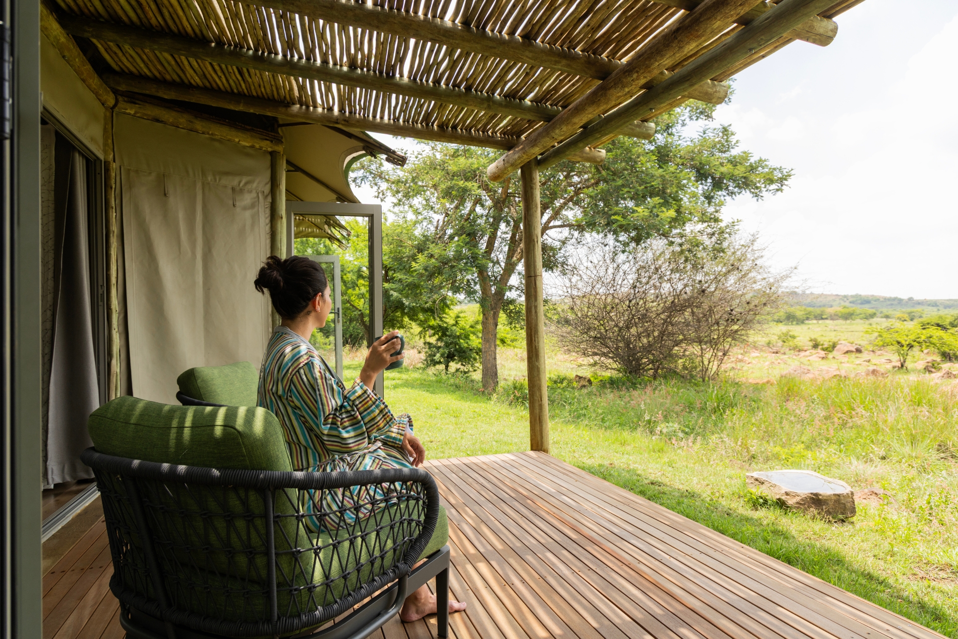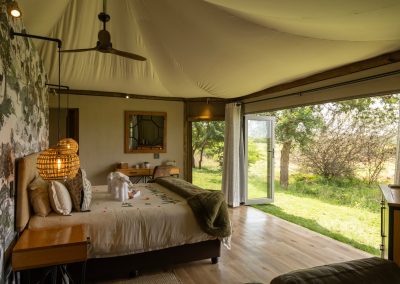 All our luxury safari tented suites are built around the view—either over the expansive plains or overlooking the dam and hippos below.