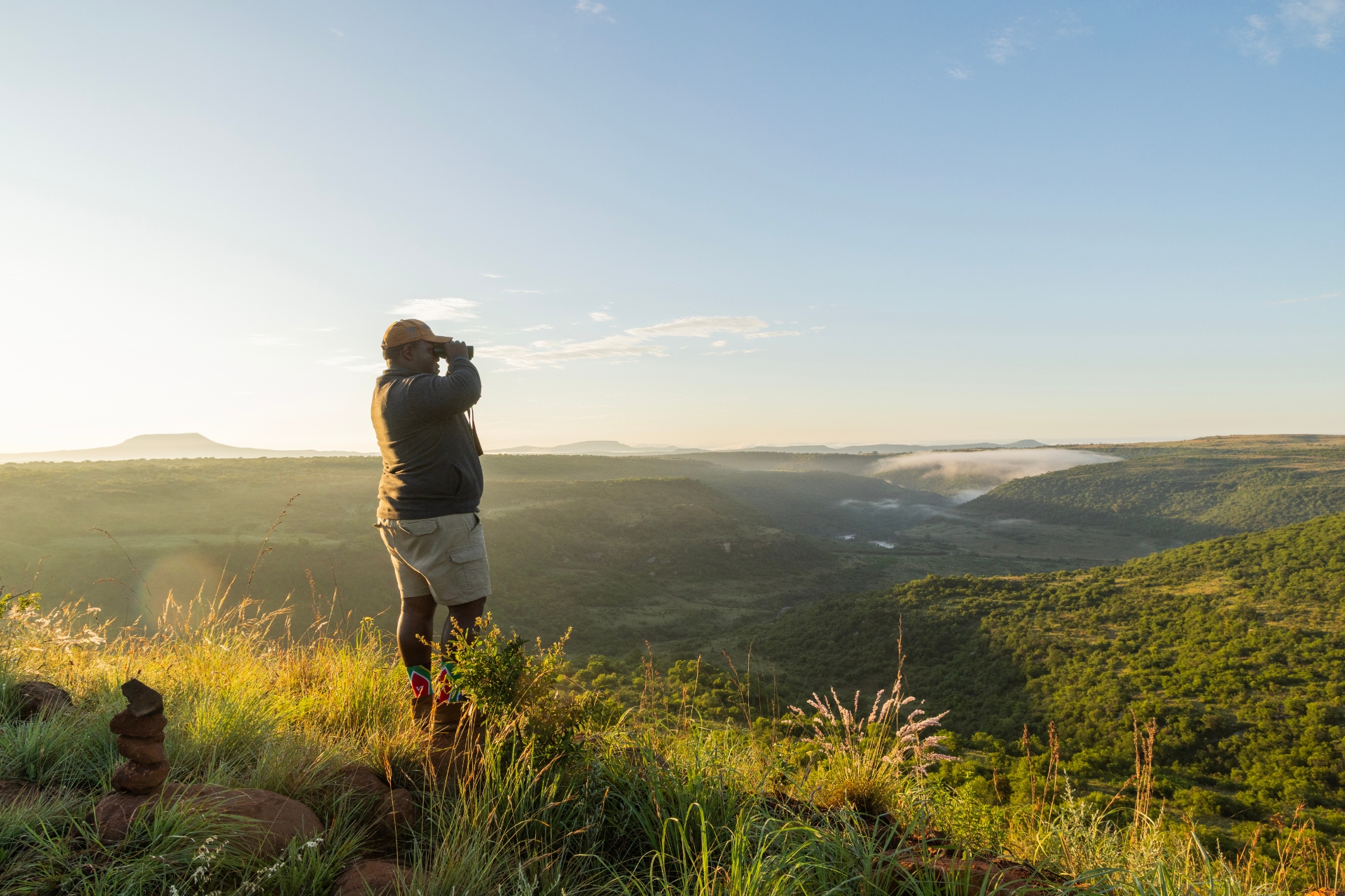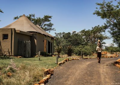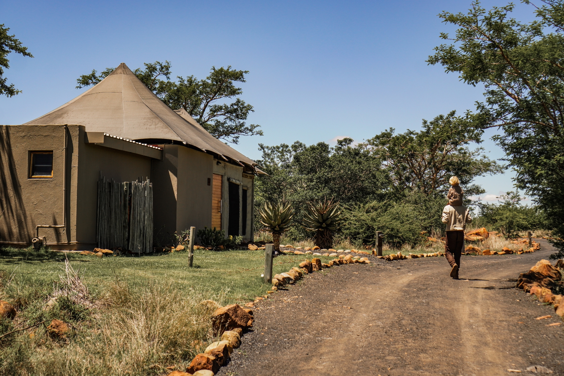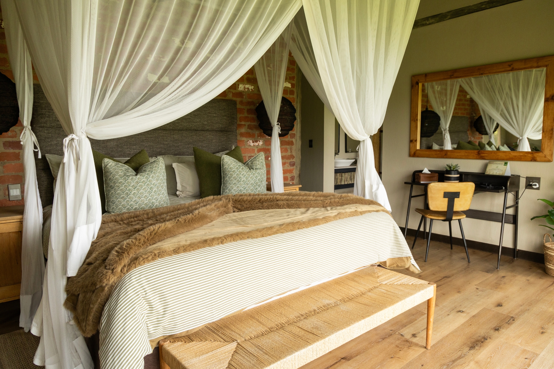 These spacious, en-suite safari tents with outdoor showers are situated within walking distance of the lapa, reception, pool, and bar. Each suite overlooks the expansive plains of the Nambiti Game Reserve.
