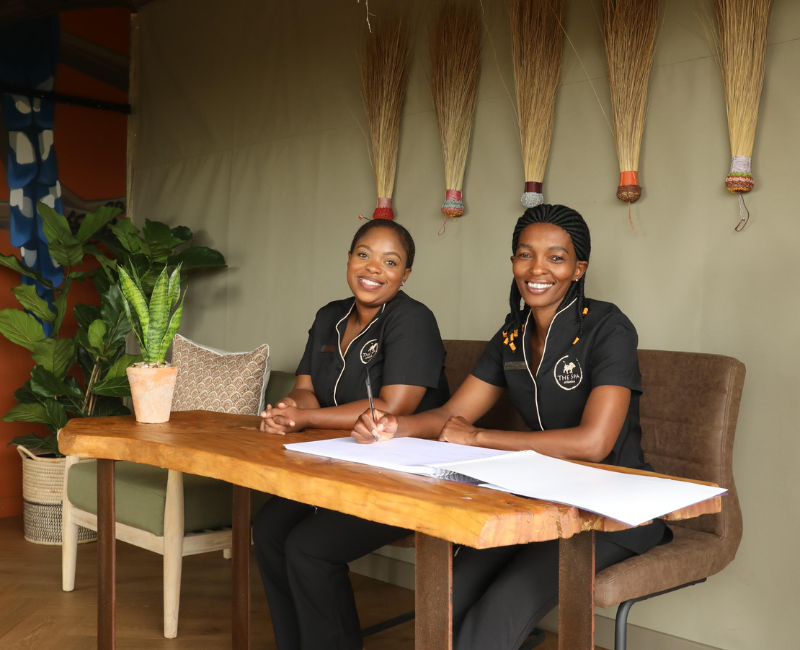 Overlooking the dam, The Spa @ Ndaka blends the sights, sounds, and colours of the bush in perfect harmony. Murals of local birds brighten each room, and guests wrap themselves in beautiful kikois as they drift into relaxation. Fluffy blankets and Haus heaters cocoon you in winter, and in summer, the doors open to invite the bush in, with the occasional sounds of hippos or elephants frolicking in the dam adding a touch of magic.